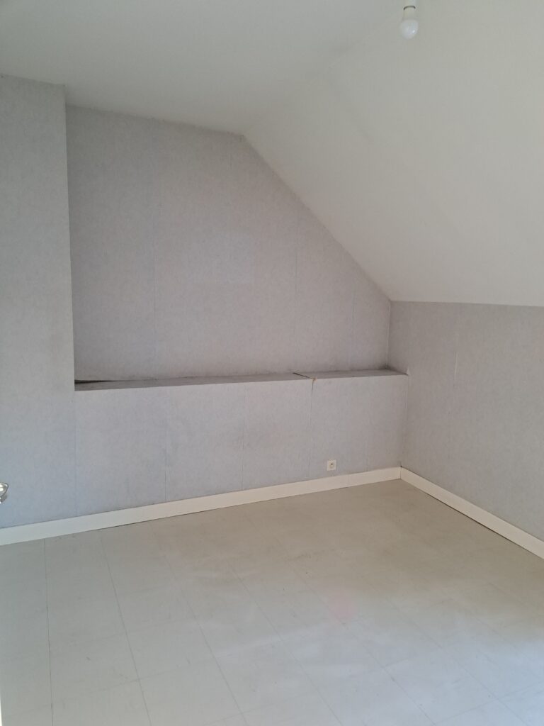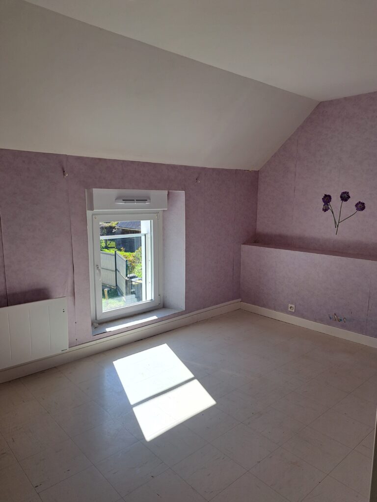 A l’étage : 2 chambres et salle de bains.